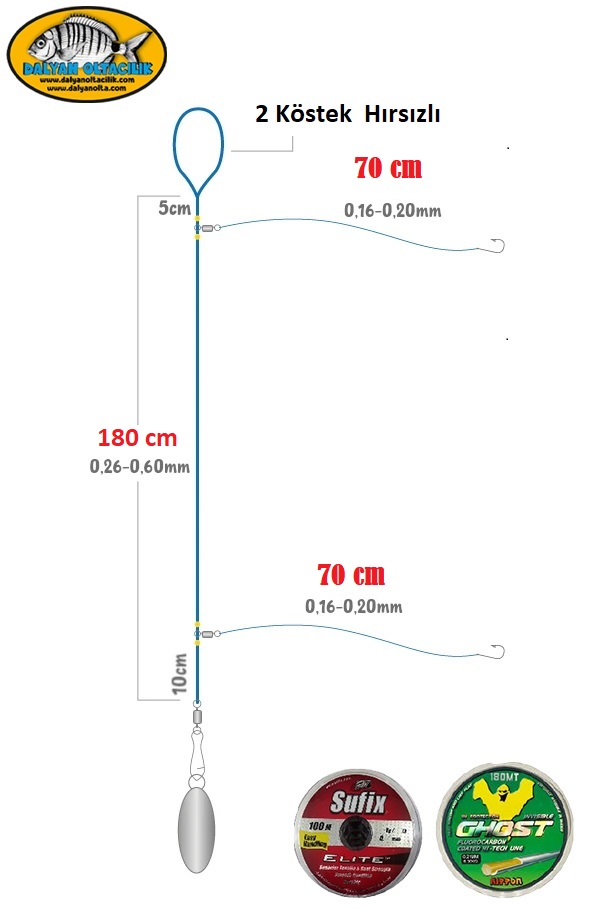 Tüm bu kombinasyonlar, Dalyan Oltacılık ekibi tarafından denenmiş ve optimize edilmiştir. Takımın ana bedeni genellikle Sufix marka misinadan tercih edilirken, kösteklerde fluorocarbon misina kullanılır. Paslanmaz fırdöndüler, sağlam snap’ler ve dikkat çekici aksesuarlarla takım hem dayanıklı hem de avcı hale getirilmiştir.